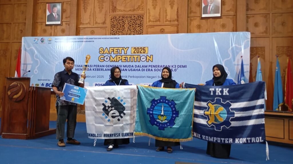 LKTI atau Lomba Karya Tulis Ilmiah merupakan ajang perlombaan teknologi yang diikuti Mahasiswa dari berbagai Instansi. LKTI Safety Competition 2025 itu sendiri diselenggarakan di Politeknik Perkapalan Negeri Surabaya (PPNS). Dimana event tersebut memperingati hari jadi K3 dan diikuti banyak tim dari berbagai Instansi yang berbeda. Politeknik Negeri Madiun sendiri memberangkatkan satu tim yang terdapat 3 Mahasiswa dua diantaranya Mahasiswa Program Studi Teknik Komputer Kontrol (TKK) dan Mahasiswa Program Studi Teknologi Rekayasa Elektronika (TRE)